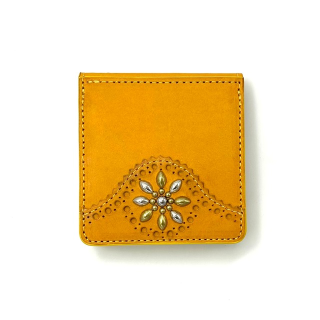 YONZY BOX小銭入れ付きスタッヅショート財布 ITALYスクラッチレザー YELLOW