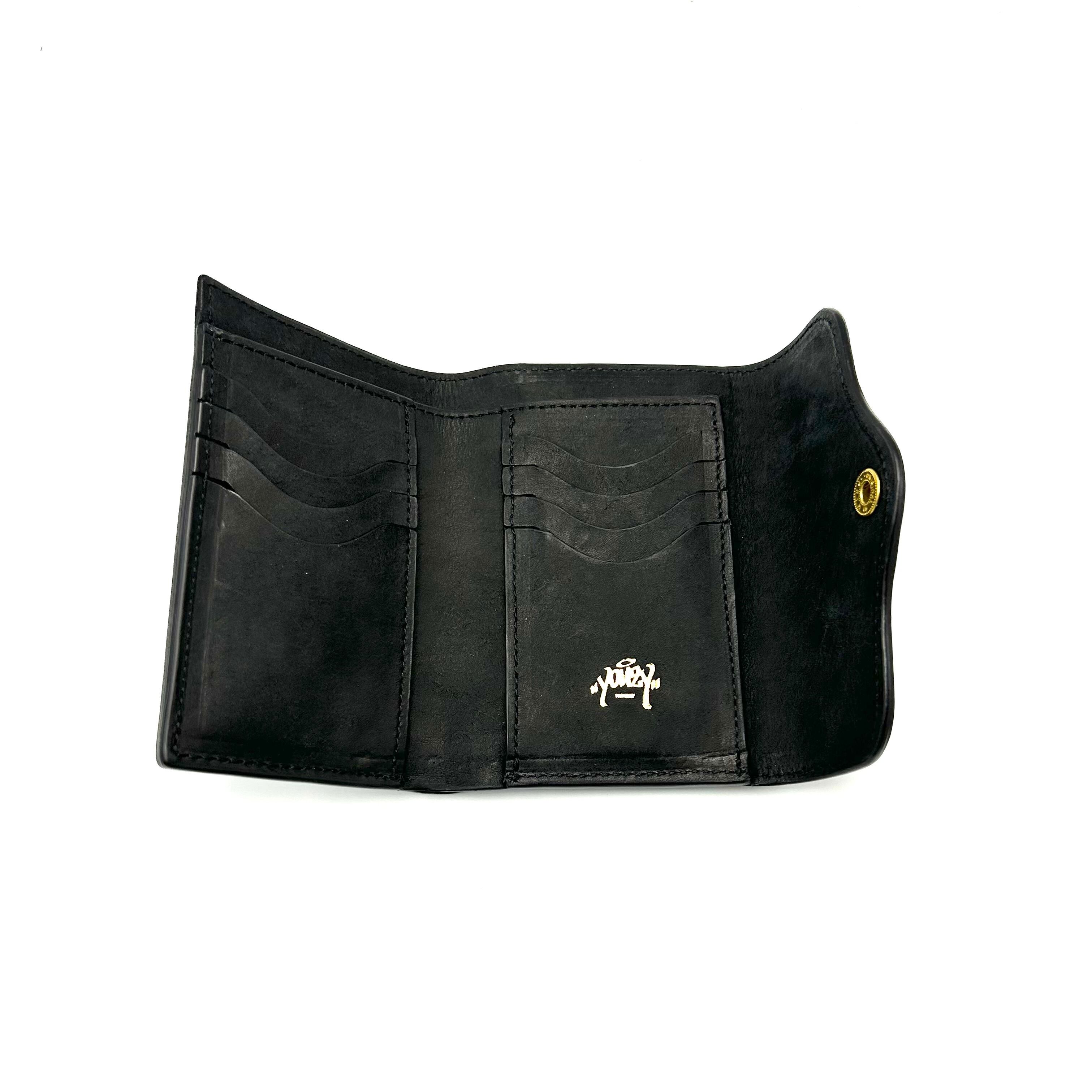 YONZY三つ折りハーフ財布 スクラッチレザーブラック