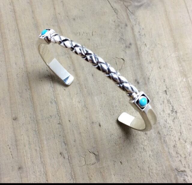 Leatherを編み込んだ形状を表現し両サイドには石が配置されています。